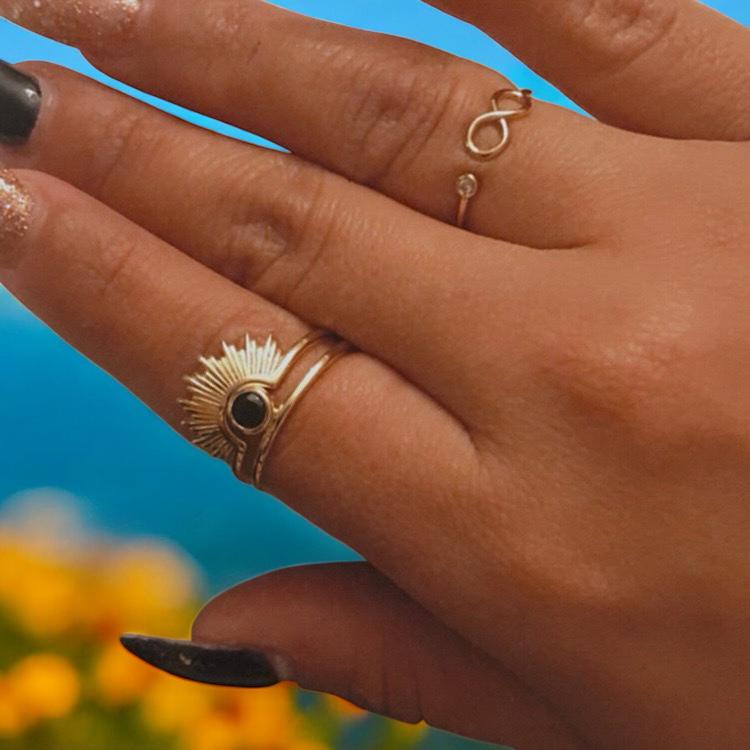 Sunburst Evil Eye Ring Set: 18K Gold Plated Stacking Rings