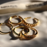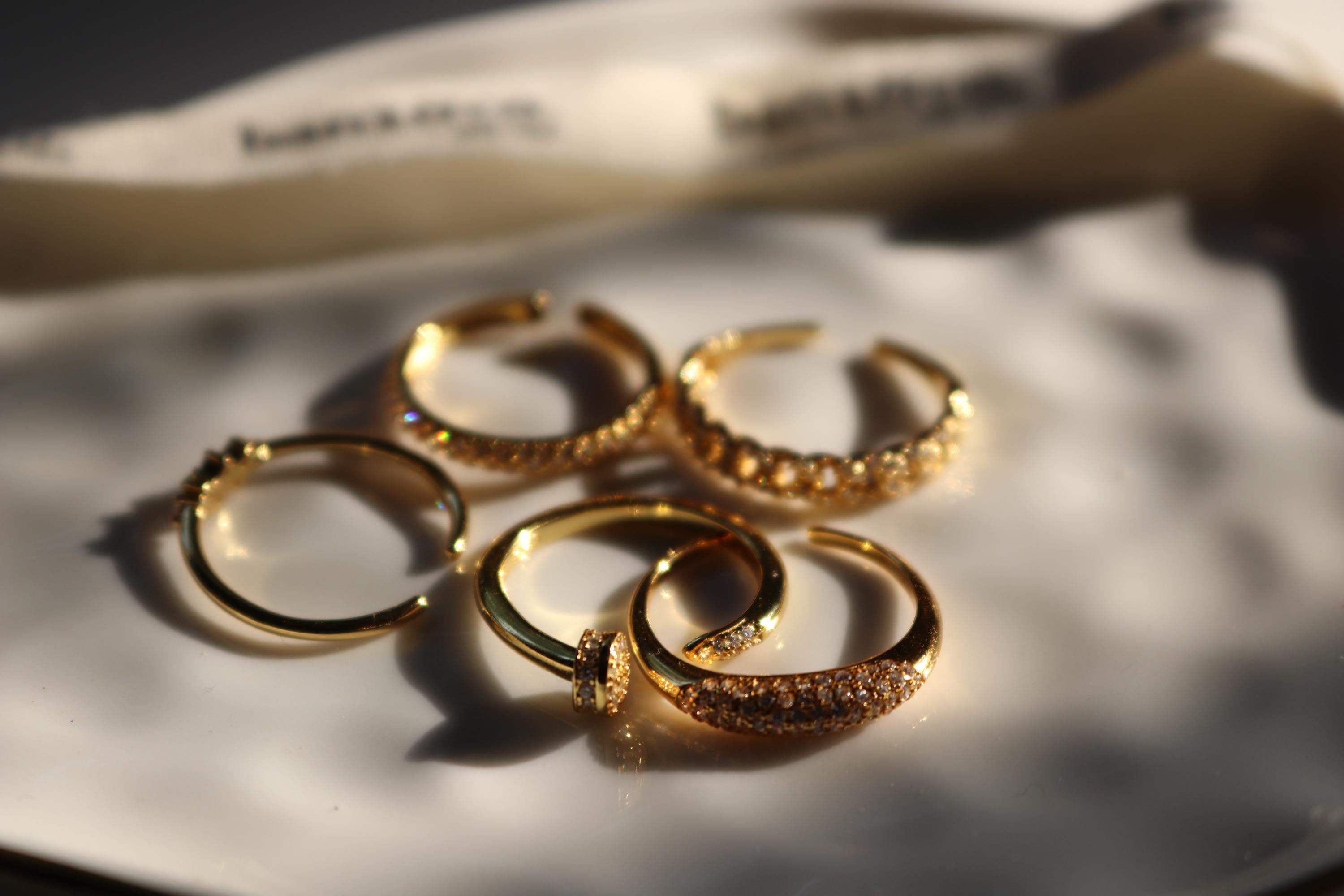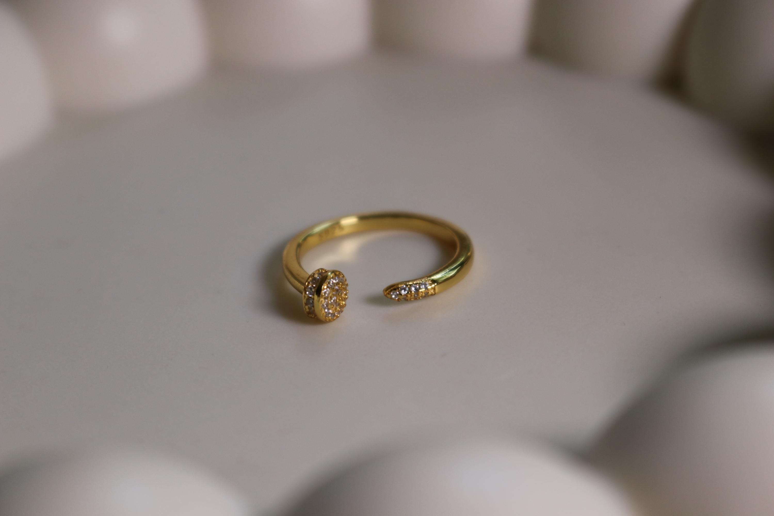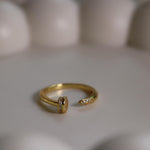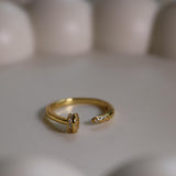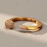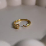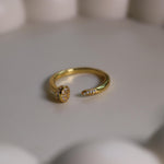 Dainty Oval Pave Adjustable Ring - S925 Sterling Silver, 14K Gold Plated, Stackable Open Band