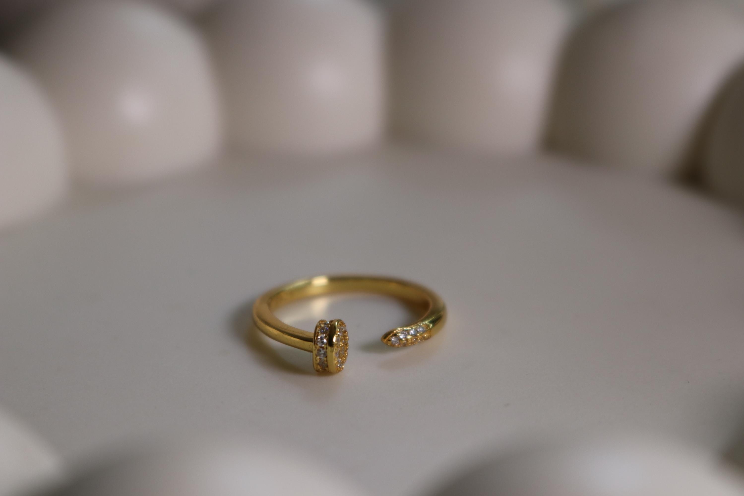 Crafted in premium S925 sterling silver and finished with a rich layer of 14K gold, this adjustable open band showcases an elegant oval pavé cluster paired with a refined pavé accent tip, creating a subtle yet striking sparkle. Designed for the woman who loves understated luxury, this waterproof, hypoallergenic piece elevates any stack with its sculpted silhouette, radiant shine, and timeless sophistication. A modern classic you’ll reach for every day.
