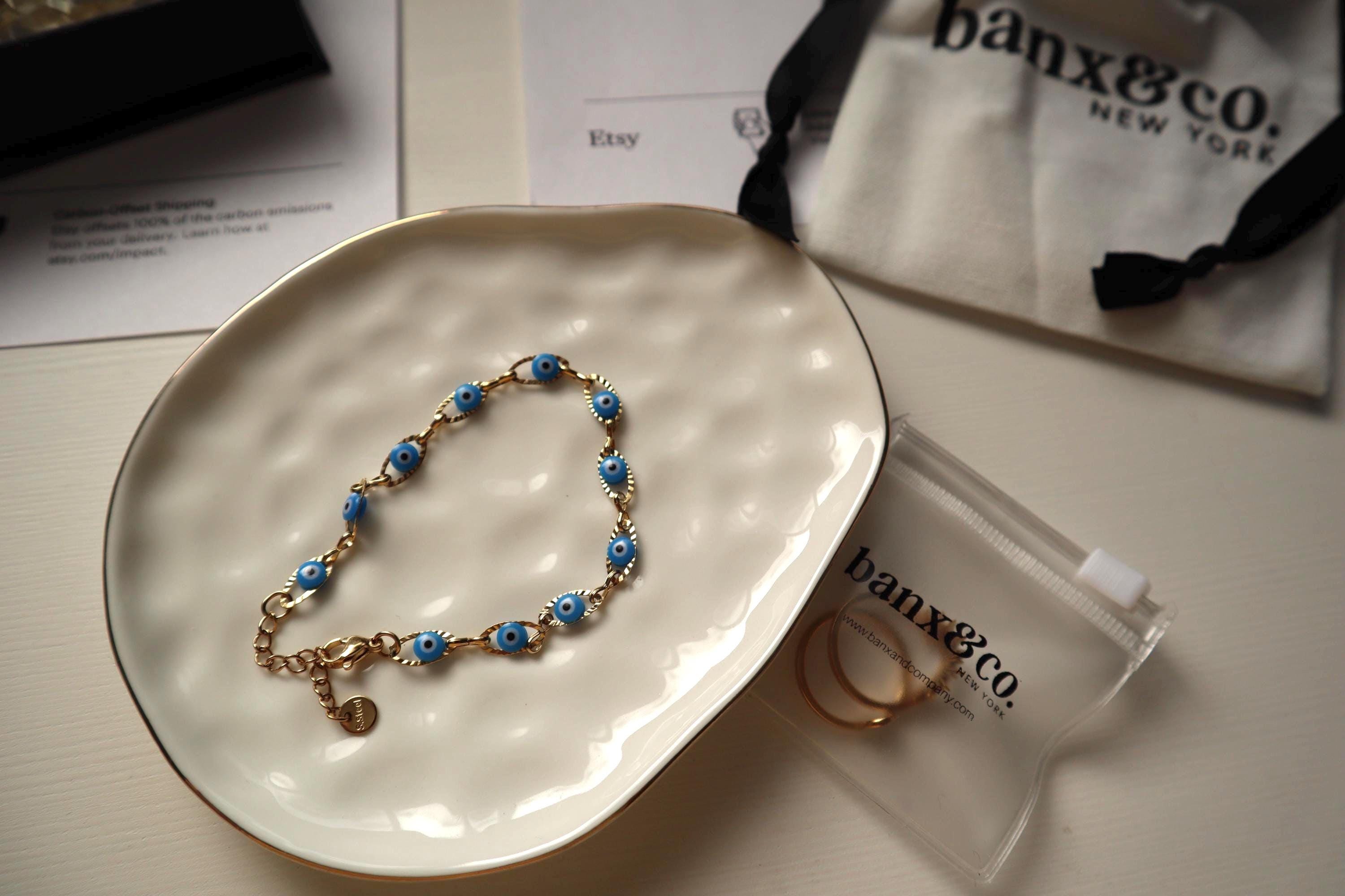 Gold Evil Eye Bracelet, 14K Plated Stainless Steel Charm Bracelet