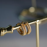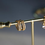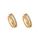 Gold Hoop Earrings: Cubic Zirconia Double Row Huggies