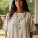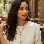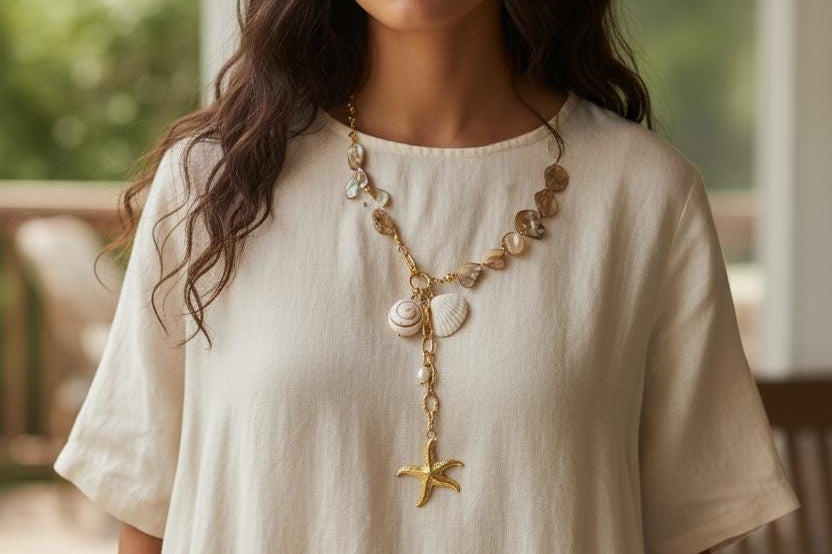 Seashell Starfish Pearl Necklace: Boho Beach Ocean Jewelry